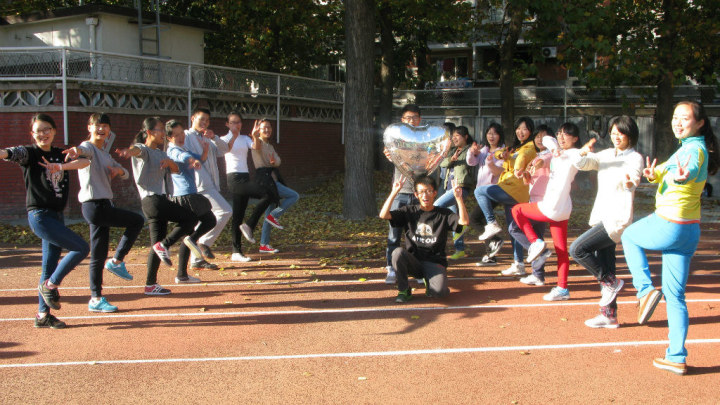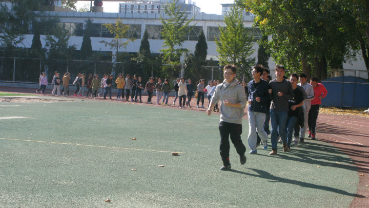 图一:体育部部长包宇宁带领全体成员慢跑热身