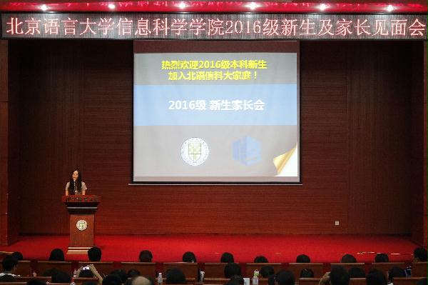 2016年8月24日,北京语言大学信息科学学院2016级新生在逸夫体育馆报到,并参与了游园会及新生家长会活动。信息科学学院第十七届团总支学生会全体成员协助学院办理了新生入学的各种手续。北京语言大学校长崔希亮、副书记刘伟、学生处处长黄展对2016级新生进行了亲切的慰问。