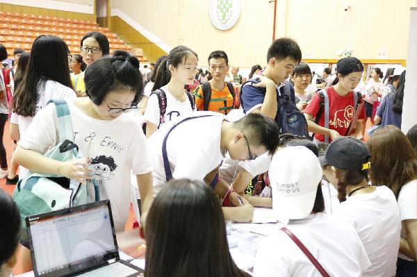 上午9:00,2016级新生入学报到在逸夫体育馆开始。递交新生入学档案,领取校园一卡通,从学长学姐手中接过独具特色的信科少年徽章。在信息科学学院团总支学生会成员的组织下,现场秩序一片井然。每一位新同学的脸上都洋溢着初入校园的喜悦。从今天起,他们正式成为一个“北语人”、“信科人”。学长学姐们细心的讲解、温馨的提醒,无不体现了来自信科大家庭的热情和关怀。最后,每位新同学都在信科院旗前留下了他们陌生、新奇、却又激动的面孔。相信在未来的四年中,或更长的时间里,他们的生活会因信科而精彩,信科的明天也会因为他们而灿烂。欢迎新同学!