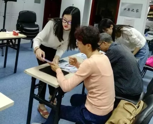 一轮学习后,志愿者同学对第一轮教学活动的教学内容进行了简单回顾,帮助老人们快速复习之前所学的技能。紧接着,活动进入下一阶段,老人们在志愿者的帮助下学习制作电子相册。志愿者表示,尽管老人们对智能手机的使用方法还比较陌生,在某些操作上存在较多疑问,但他们在活动过程中体现出的高涨的学习热情和认真的学习态度,无不感染着现场的志愿者们。