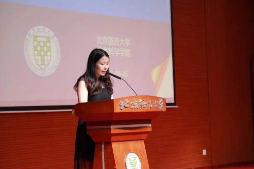 首先,来自2016级信息管理与信息系统1班的学生代表张璇发言。在发言中,她回顾了自己两年的北语时光:辅导员老师的关怀和帮助,让她变得独立自主;任课老师的指导和督促,让她严于律己,取得优异成绩;北语自由包容的环境让她生活充实,得到全面发展。在北语信科院,她不断成长进步,她表示,每位同学应在大学阶段打磨自己,努力拼搏,不忘初心,一定能成为有用的人才。