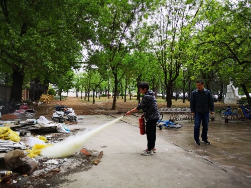 本次检查分为消防安全现场教学和实验室用电安全隐患排除两个部分。首先,李超书记向实验室所有研究生讲解了各类灭火器的特点和使用方法,并请在场同学逐一进行了实操演练。之后,自查组对学院实验室进行逐间、逐工位排查,重点排查内容为实验室存在的消防安全隐患和用电安全隐患。在出现插线板级联现象的实验室内,自查组还帮助研究生现场更换了新国标的安全插线板。