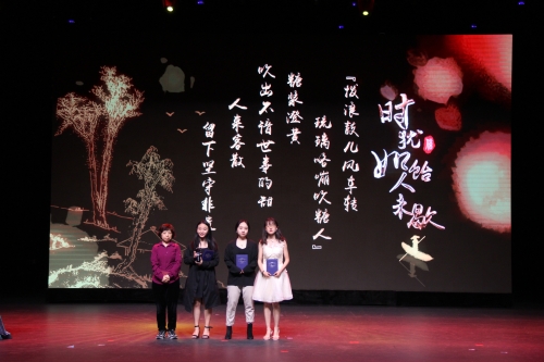 获奖作品逐步揭晓,现场气氛也持续升温。随后,北京语言大学广播台为大家带来配音表演“百变之声”。他们先后为《疯狂动物城》、《撒娇女人最好命》、《夏洛特烦恼》、《甄嬛传》和《唐山大地震》 中的经典片段配音。他们饱满的情绪、富有张力的表演活跃了现场气氛,也赢得观众们的阵阵掌声。
