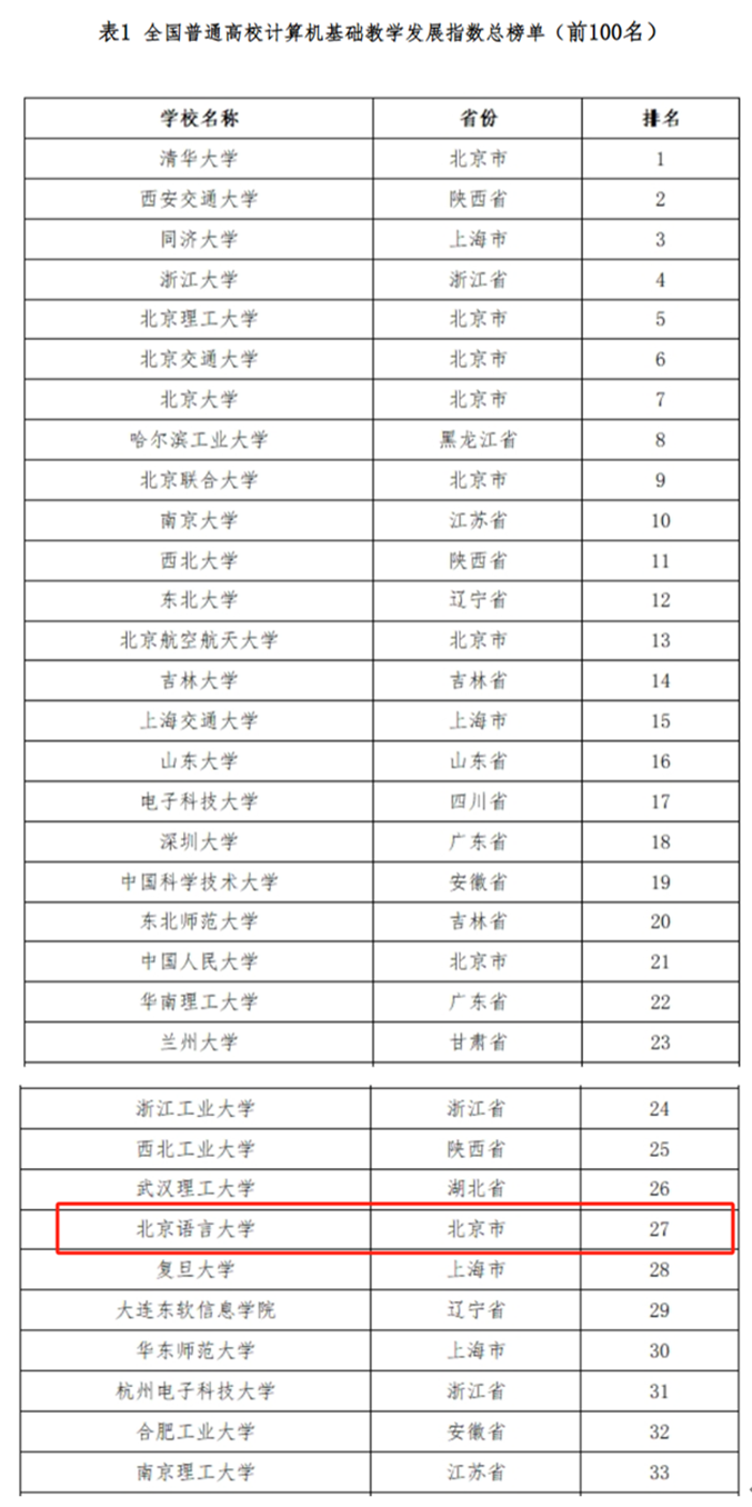 正是因为北语人持续奋斗和不懈努力,取得了优异成绩,使我校在全国普通高校计算机基础教学发展指数榜单中名列前茅,这样的成就彰显了北语人在我国高校计算机基础教育领域的卓越贡献。