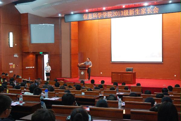 家长会上,刘贵龙院长首先对信科院的成长经历,发展道路,科研水平,实验条件,教师配备等情况进行了基本的介绍,强大的师资力量振奋了每一位信科学子的心。接着,杨萍副院长又从教学课程体系与特色科研项目为大家详细介绍了信科院的人才培养模式,信科院严格的技术培训与北语得天独厚的语言环境相结合,给信科学子创造了最有利的成长条件。接下来,李超老师代表学生办公室为我们介绍了信科院的学生工作,从学生工作的队伍、理念、特色,到文体活动,学术竞赛,学生培养重点,再到针对大一新生可能存在的问题,给学生家长提了几点恳切的建议。最后,由目前在微软工作的优秀校友修驰学姐对于新生在搭建知识体系,培养解决问题与沟通能力方面畅谈了的经验与感悟。