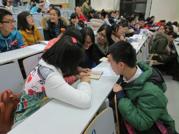 2013年12月26日(周四)晚7点,信息科学学院第二次党课讨论活动在主南102举行,信科院11级党支部副书记陈喆带领13级的本科新生党员和入党积极分子展开激烈的讨论。
