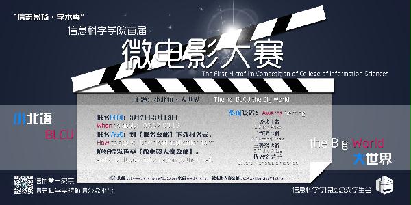 “小北语,大世界” 首届微电影大赛正式启动,虽然只有几分钟的精简视频,却能记录下你在北语的独特时光,却能用镜头的变换传达出你最缤纷的创意。小北语,大世界;微电影,大梦想。期待你的加入!!!