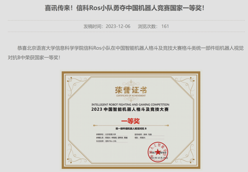 信科代表队在中国智能机器人格斗及竞技大赛格斗类统一部件组机器人视觉对抗B中,荣获国家一等奖