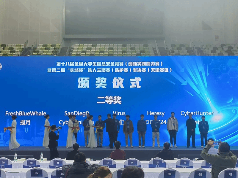 信科代表队参加第十八届全国大学生信息安全竞赛(创新实践能力赛)暨第二届“长城杯”铁人三项赛(防护赛)天津赛区半决赛,四位同学荣获二等奖