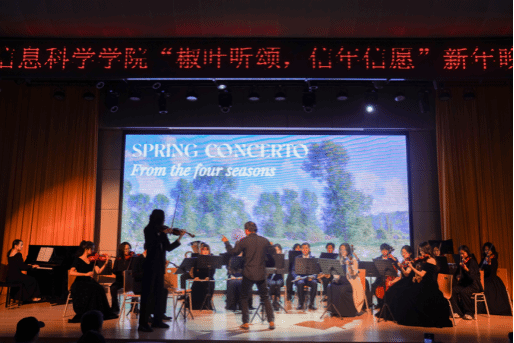 2024年12月20日,信息科学学院“椒叶听颂,信年信愿”新年晚会上“中外学生艺术团西乐队”在演奏