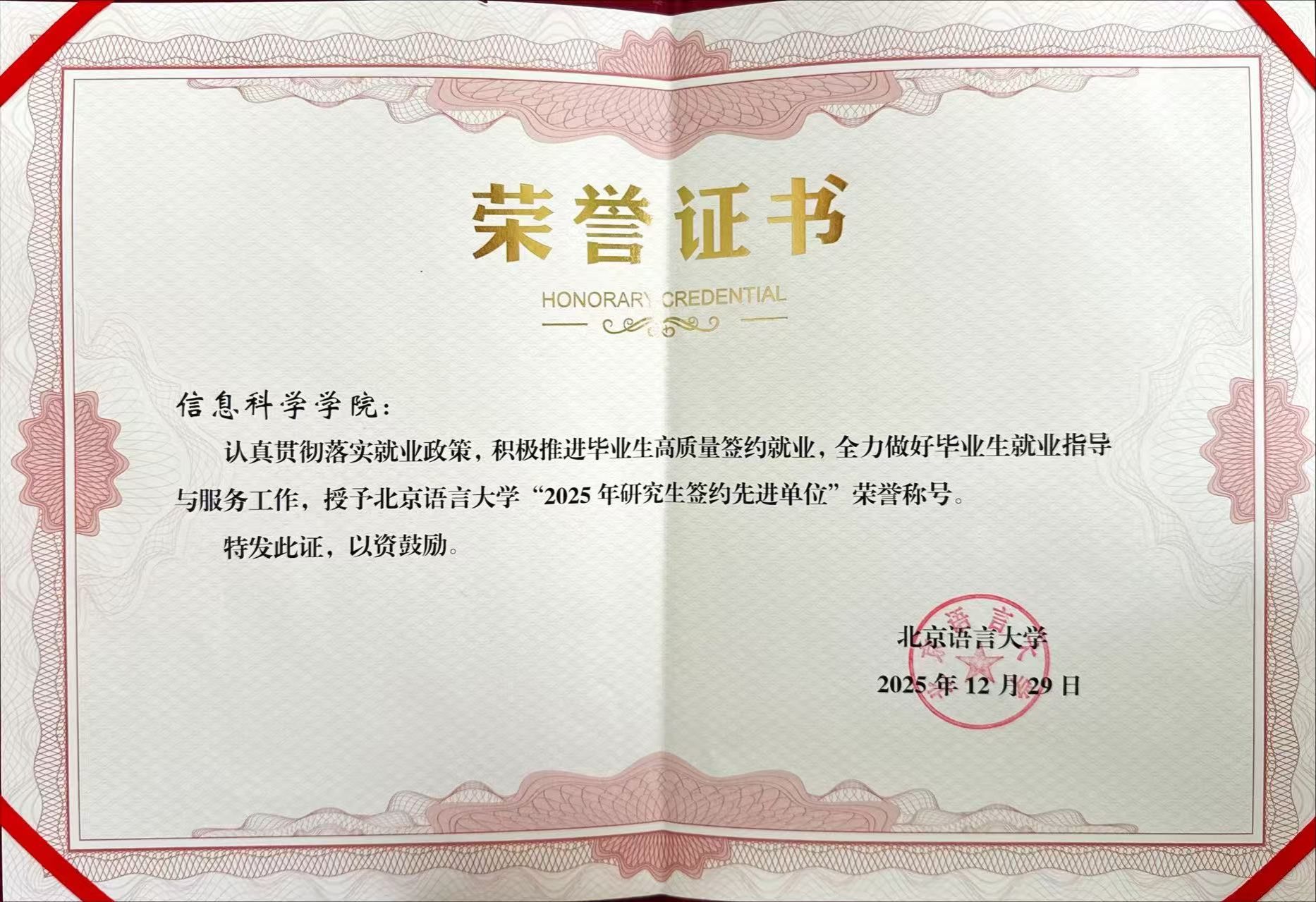 2025年,北京语言大学信息科学学院坚持以习近平新时代中国特色社会主义思想为指导,深入学习贯彻党的二十届四中全会精神,积极将“加快高水平科技自立自强,引领发展新质生产力”的会议精神融入在治学、办学的全过程,全面落实立德树人根本任务。在学院领导班子的统筹引领下,全体师生同心聚力、实干笃行,以创新驱动发展,在党建引领、教育教学、科研创新、学科竞赛、学术交流、产学研融合、国际合作、校友生态、人才培养、队伍建设等领域多点发力、积极作为,构筑起“学科交叉、科教融合、产教协同”的改革新格局,助力学院各项事业高质量发展。