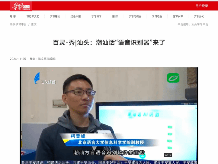 2025年9月23日,北京语言大学信息科学学院柯登峰老师团队联合深圳广电数字科技有限公司、北京中科模识科技有限公司,凭借“基于广播电视节目内容的方言识别算法——以潮汕方言为例”项目,在广电AI大赛“智能字幕与译制”算法赛道荣获二等奖。该成果是学院深化产学研深度融合、以技术服务文化传承的重要实践,彰显学院科研服务社会的责任担当,旨在以技术创新守护方言文化、赋能媒体技术升级。项目聚焦方言数字化保护与广播电视智能技术融合发展需求,研发的创新技术为相关领域发展提供有效解决方案。