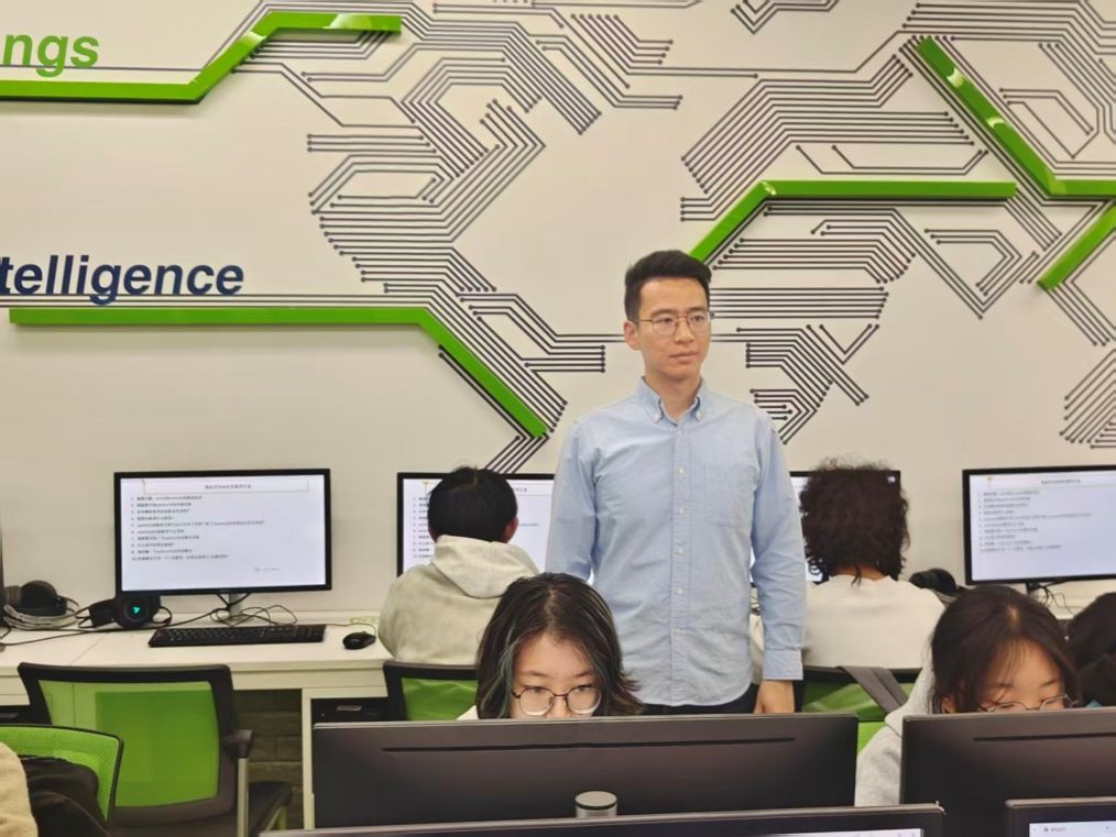 在教学工作中,唐共波老师立足人工智能时代人才培养新要求,深入探索编程课程教学新范式,持续打磨优化课程内容与教学设计,其主讲课程课件获评北京市优秀教学资源,这正是他多年深耕教学、潜心实践的集中体现。课堂上,他始终坚持以学生为中心,灵活运用问答式、启发式教学,循序渐进引导初学者建立系统的编程思维;同时在理论讲授与实践操作中穿梭指导,实时关注学生学习状态,针对共性问题集中讲解,构建起“师—生—机”协同互动的优良课堂生态。
