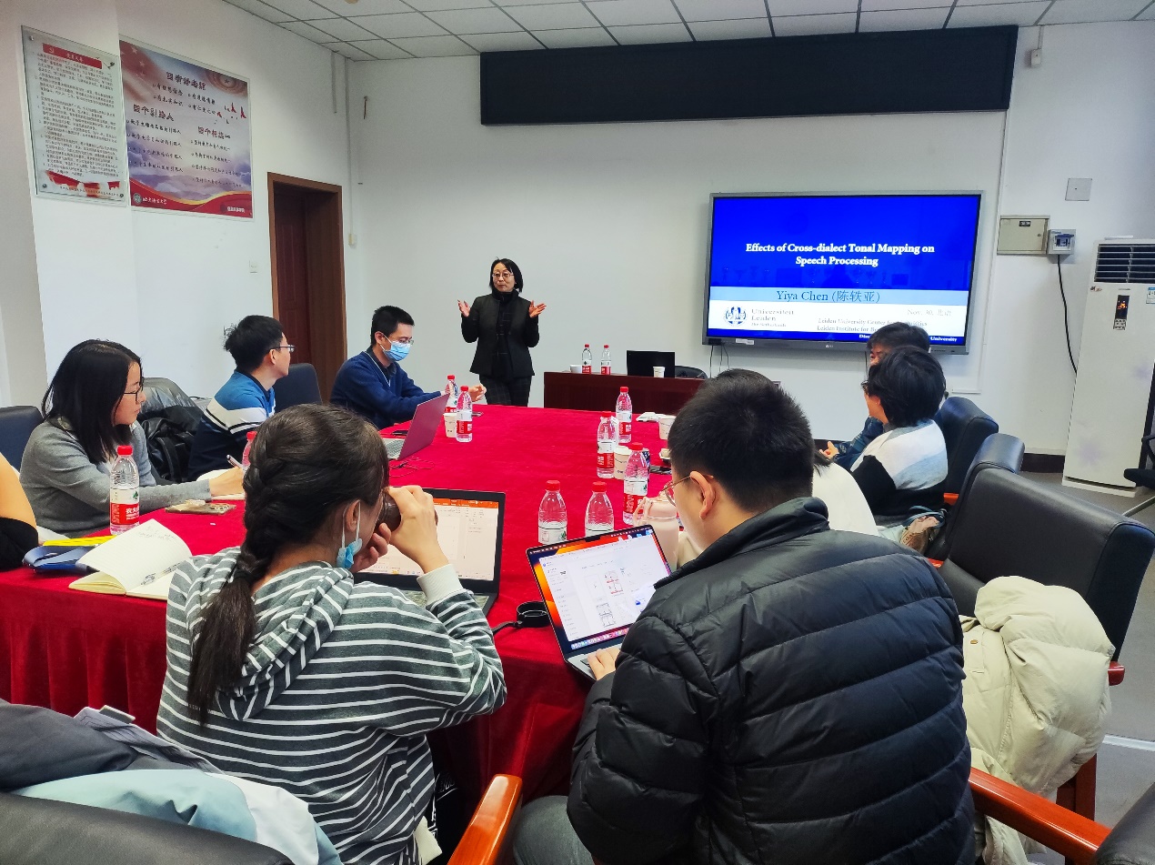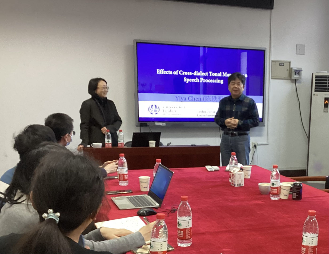 2023年11月30日,欧洲科学院院士、荷兰莱顿大学(Leiden University)陈轶亚教授来我校访问交流。应信息科学学院语言智能学习研究所及北京语言大学归国留学人员联谊会邀请,陈教授为校内外师生作了题为“Effects of Cross-dialect Tonal Mapping on Speech Processing(跨方言声调映射的语言加工效应)”的学术报告,并在会后与语言智能学习研究所智能语音技术实验室(SAIT)师生进行了座谈交流,进一步了解SAIT团队的研究课题和进展。语言智能学习研究所所长、北京语言大学归国留学人员联谊会副会长张劲松教授主持了本次学术交流活动。