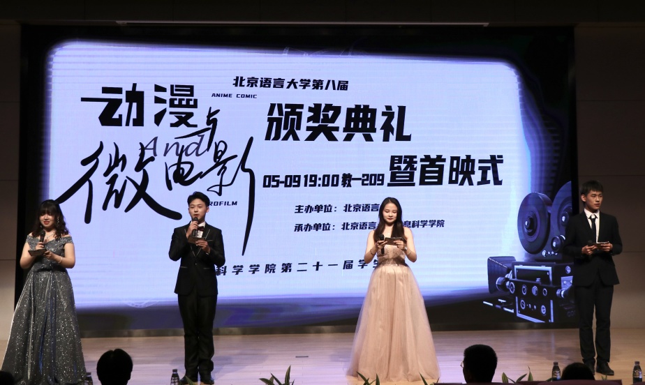 来自人文社会科学学部的周由同学、王昊同学、森巴特同学,来自商学院的马三丁同学共同主持本次颁奖典礼暨首映式。