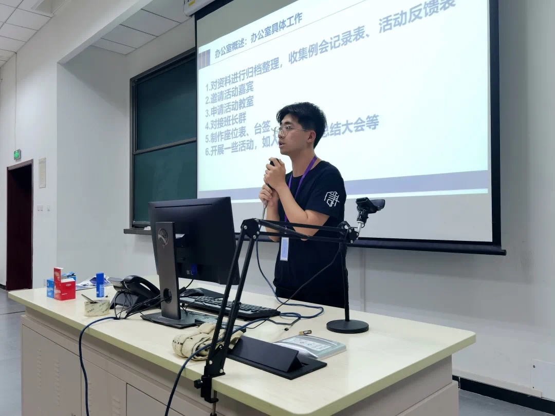 本次大会由各部门工作总结、主席团工作总结、辅导员秘书长讲话、合照四个环节组成。