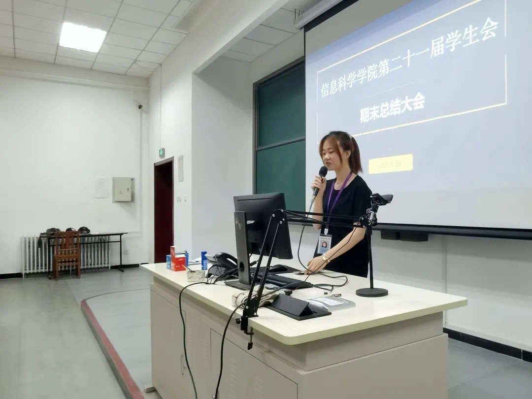 5月28日晚7点,信息科学学院第二十一届学生会期末总结大会在主南200顺利举办。出席本次大会的有信息科学学院辅导员王晶老师、信息科学学院第二十一届团总支学生会秘书长王丹、信息科学学院第二十一届学生会主席团以及各部门部长与干事。办公室干事马楷杰担任本次大会主持人。