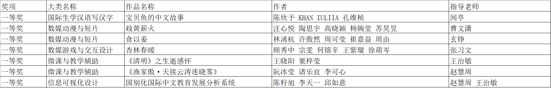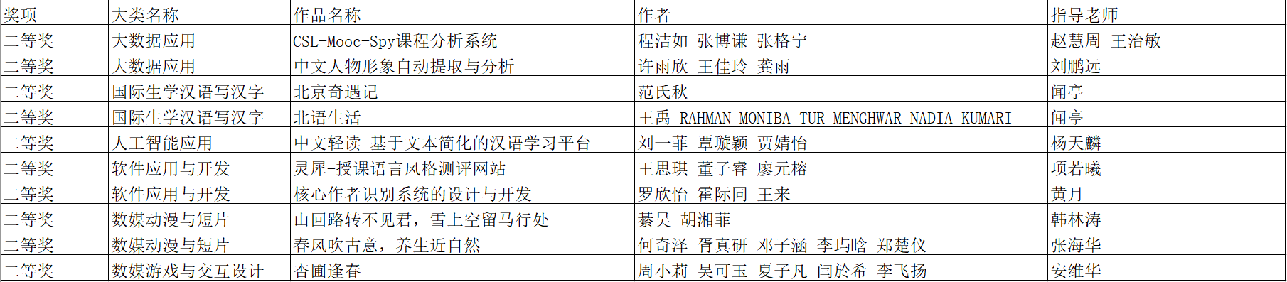 附件一:北语2023年北京市计算机设计大赛获奖名单